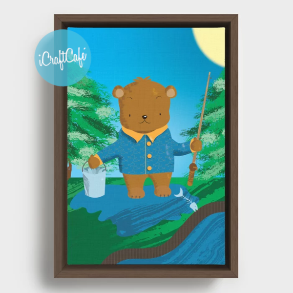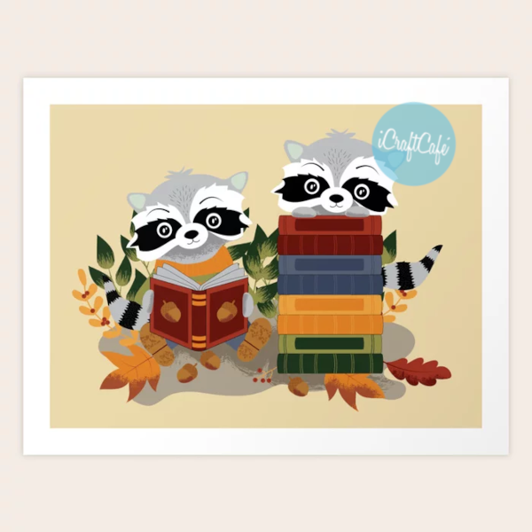 Woodland animals have always been very popular as nursery room decor . Here is my version of a charming little fox with a basket filled with autumn leaves and mushroom . This design is also available on framed art print , regular art print , poster , canvas and more .